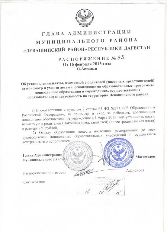 Документ об установлении размера платы, взимаемой с родителей (законных представителей)